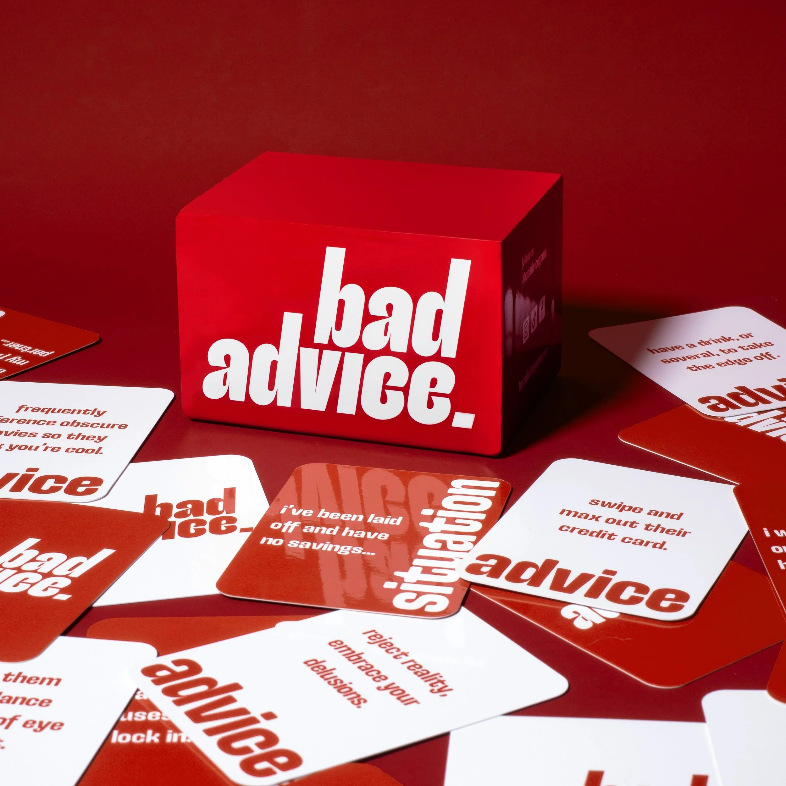 bad advice is the 18+ party game for those with dirty, disturbing, devious minds and an appetite for destruction.